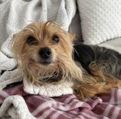 Maggie is a ~10year old yorkie looking for a forever home. She is very happy, loving, and calm. She would do best in a home with another dog her size. She loves to be outside with her human and other dogs in the home. She will potty outside if you take her but does not ask to go outside. She has no teeth and has a very sensitive stomach. She is on prescription dog food in order to keep her GI in good health. Her food is wet so it is easy for her to eat. But she prefers to be spoon fed. She loves to sleep in bed with her human and will sleep all night. She does not play with toys or balls and prefers to snuggle with her human while watching TV. She is the best lap dog and loves to be anywhere her favorite human is. She is somewhat scared of many sounds and/or activities. So introducing her slowly to new things is essential so she will not become fearful. Maggie would do best with a quiet and calm or retired family.