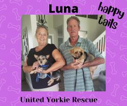 At United Yorkie Rescue we are blessed with an extraordinary success rate in finding forever homes for our rescued foster dogs. To share this joy we've created this "Happy Tails" page. Happy Tails is devoted to the celebration of these wonderful stories with everyone who loves dogs. We hope that you enjoy these "Tails" as much as we have. Thank you!!