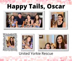Little Oscar came to United Yorkie Rescue from a loving home where a new baby entered the scene and little Oscar wasn't as safe as he needed to be at his little size. He was such a loving little guy and loved to spend time with his foster mom and his foster dog siblings. His foster mom looked for him a perfect forever home and she found just that. Oscar has a family with older children and yorkie siblings. Oscar is in yorkie heaven and could not be happier. HAPPY TAILS OSCAR!!!