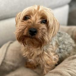 2/27/22 Little Elmo was adopted today. This tiny little boy was found lost and wandering the streets. A Good Samaritan found him and brought him out of the cold and into the shelter. United Yorkie Rescue was called, and within 24 hours, took him from the shelter into his foster mom's warm and loving home. Elmo needed a lot of medical care. He had severe periodontal disease and bone loss in his jaw. He had a big area of hair loss on his back either from fleas or a yeast infection. It took a while, but Elmo received all the care he needed medically as well as the love he craved. Finally, Elmo was healed and ready for his forever home. Today that happened. Elmo has found his Furever home! He settled into his new home and into his Mommy and big sister's arms right away, and while his new Mommy knew he was "the one" Elmo seems to think the feeling was mutual. While we know nothing about the first 12 years of this itty bitty boy's life, we do know that he will be getting all the loving care and undivided attention that he most likely never received. He is adored and we are happy to know that he is getting the life he deserves. Congratulations Elmo!