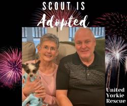1/08/22 Scout was adopted today!! Sadly, Scout did not receive the upbringing that he deserved. He had been neglected and came to UYR with a history of being food-deprived. Some of Scout's behaviors indicated that he was also abused. While it did take some time for Scout to let his guard down, he became playful with his adopted family and enjoyed daily walks and lots of snuggle time. Scouts foster family had grown to care deeply about this little fella and will miss him greatly.
