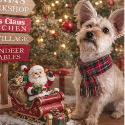 P.S. Please tell Mrs. Santa Paws hello, and I hope shes keeping the elves busy making doggy toys, doggy dolls, sweaters, and jackets!